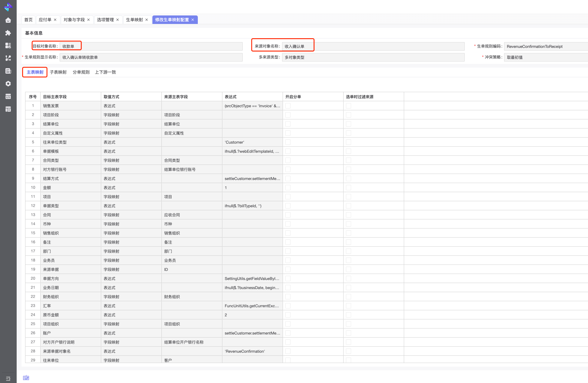"srcObjectType": "RevenueConfirmation", //来源单据类型