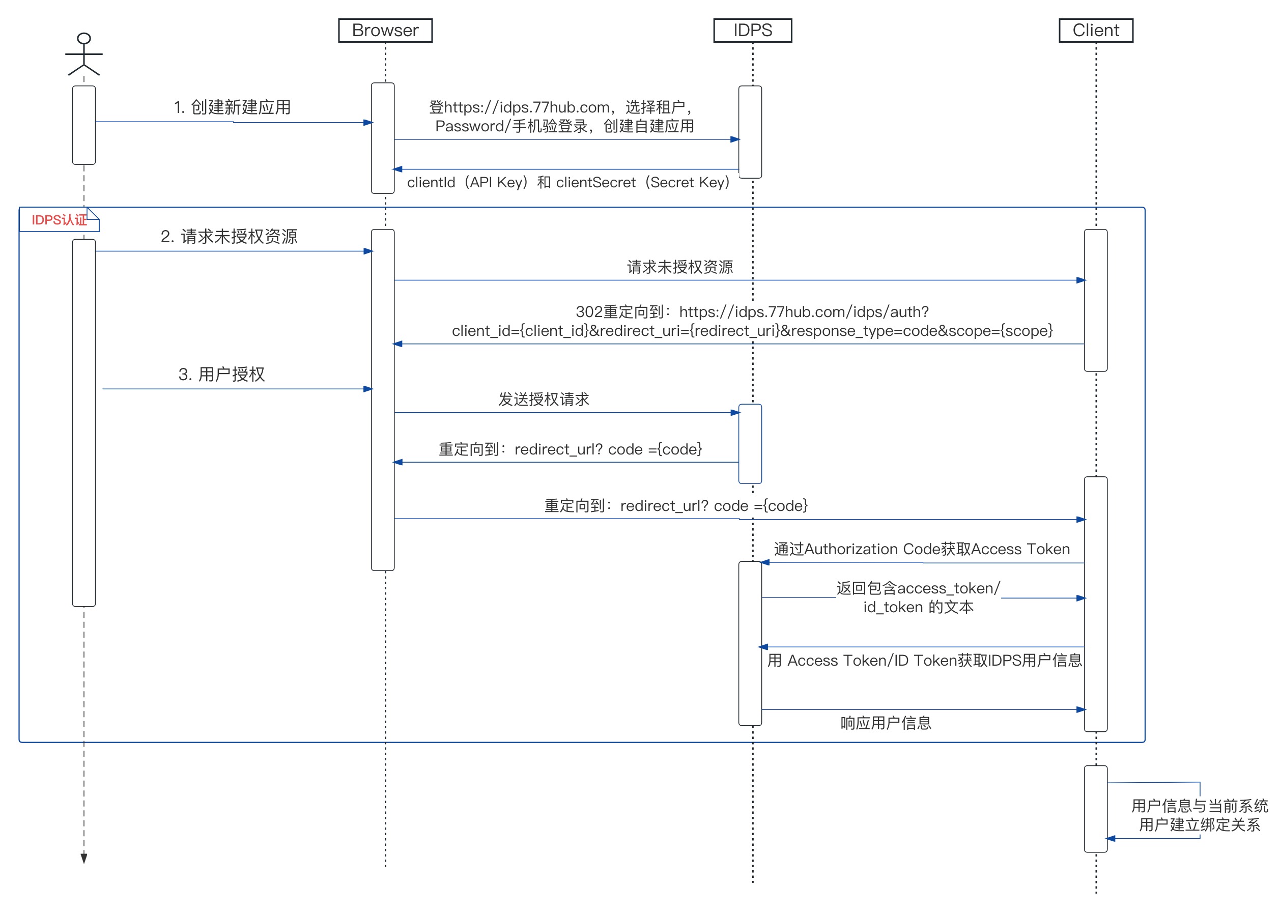 a. 通过IDPS 绑定的第三方账号登录流程如下图所示: