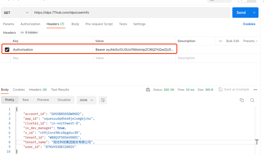 - https://idps.77hub.com/idps/userinfo 接口postman请求示例如下: